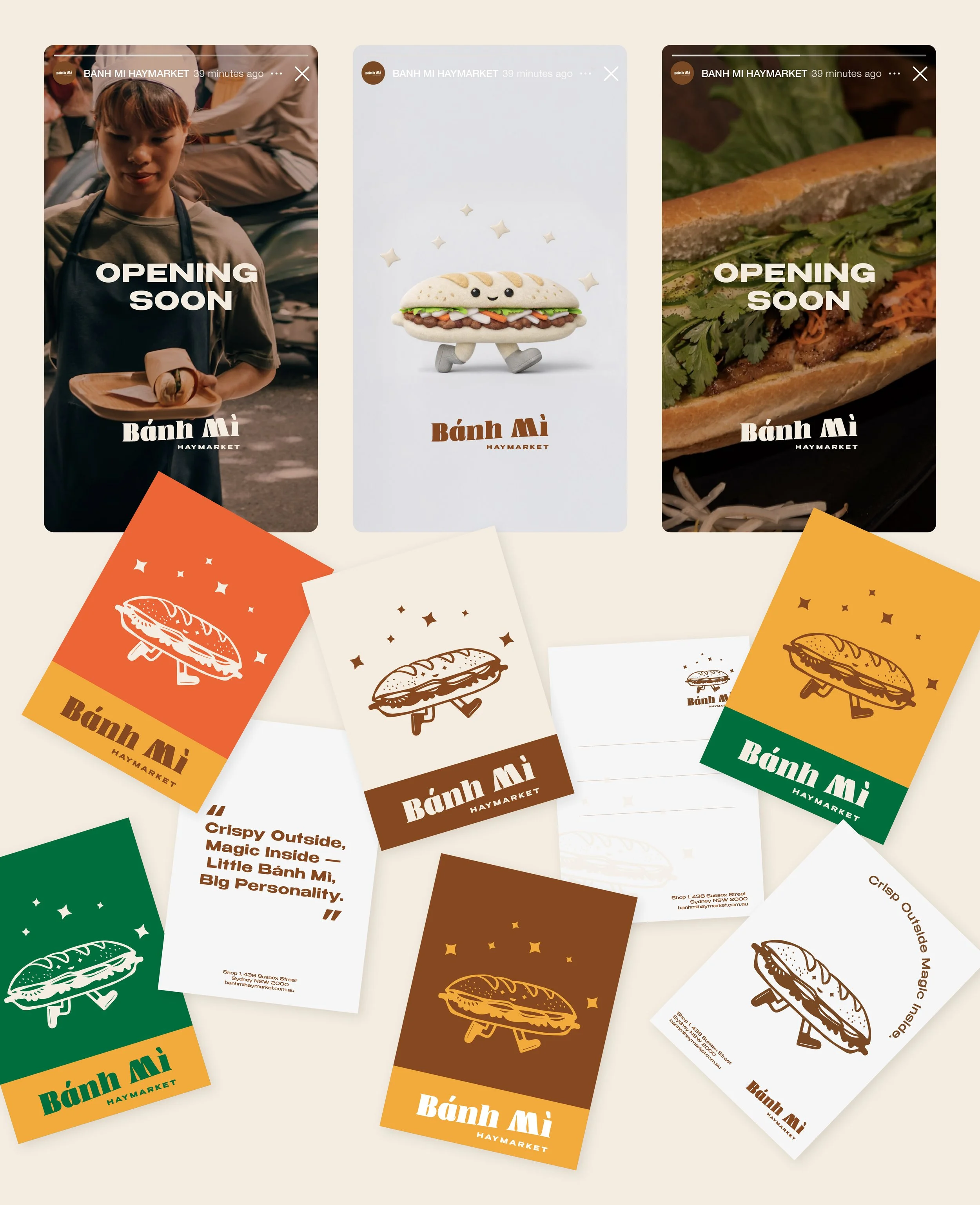 A modern take on authentic Vietnamese bánh mì — fresh, crisp and full of flavour. With bright colours and our cheeky mascot leading the way.