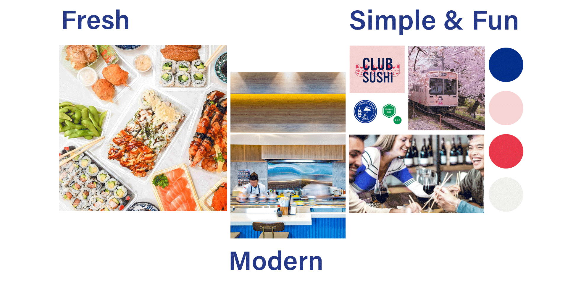 A fresh rebranding design for a dynamic sushi train restaurant in a vibrant, family-friendly destination.